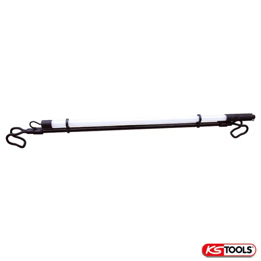 Baladeuse à LED rechargeable sans fils KSTOOLS®. 88 LEDs SMD. Système d’accroche réglable de 1270 à 2100 mm. Protection du tube en matière plastique. Poignée en caoutchouc. Crochet. IP44. Garantie à vie ! (dans des conditions normales d’utilisations). Faible conso d’énergie Eclairage: 800 Lumens Batterie: 7,4 V / 2400mAh Typede batterie: Lithium-lonen Longeur: 1270 – 2100 mm Diametre: 35 mm Classe de protection: IP 44 Poids: 2 kg