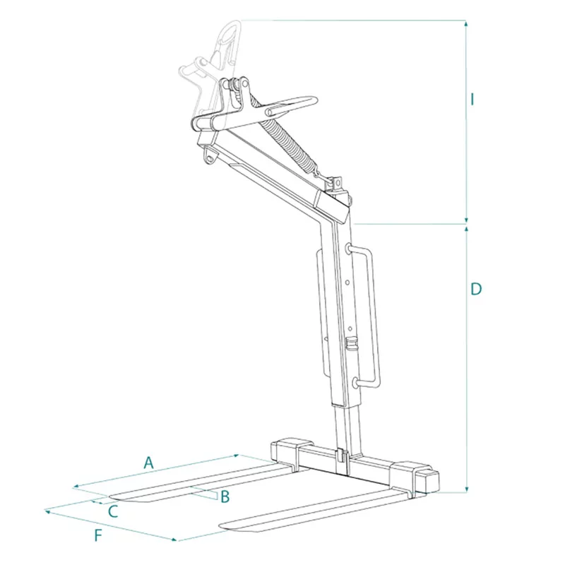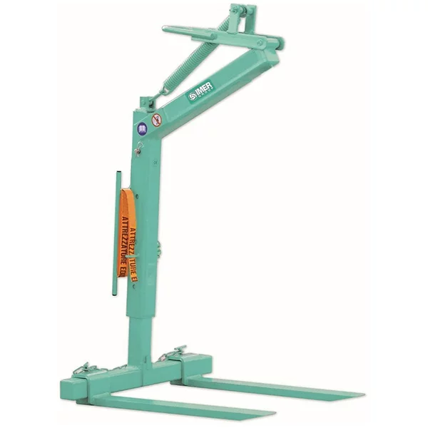 Lève palette IMER capacité de 2000 kg, recommandé pour palettes Europe. Réglage pratique jusqu’à l’ouverture souhaitée. Molette appropriée pour un verrouillage de fermeture fonctionnel et maniable. L’innovation : un poids réduit par rapport aux fourches traditionnelles. Un atout qui permet d’optimiser la capacité de la grue. Encombrement réduit.