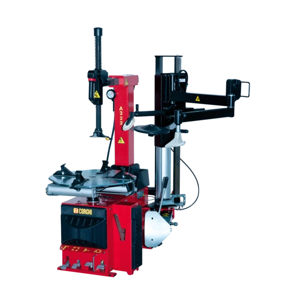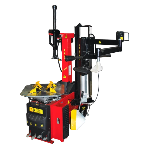 Démonte pneus automatique CORGHI, parfaitement adapté pour un usage professionnel et intensif sur des pneus de véhicule léger, motocycles et scooters.