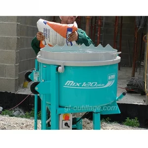Malaxeur autonome puissant et polyvalent, conçus pour un usage professionnel il malaxe les matériaux plus difficiles, il permet le malaxage de mortiers traditionnels ou de produits pré-mélangés avec une granulométrie allant jusqu’à 8 mm. Il est également équipé d’un double sens de rotation des pales. – Moteur monophasé 230V/50Hz. – Motoréducteur à bain d’huile et transmission par courroie – Dispositif électrique de sécurité qui coupe la rotation des pales lors de l’ouverture du groupe malaxeur – Interrupteur magnétothermique avec prise IP 67 – Grille avec lame crève-sac – Crochets pour levage – Roue auxiliaire Puissance moteur : 230V/50HZ – 1.4 Kw – (1.89) CH Courant absorbé : 9 A Capacité cuve : 120 Litres Capacité utile : 90 Litres Diamètre de la cuve : 745 mm Hauteur de déversement maxi : 665 mm Trs/Min pales : 38 trs/min Granulométrie : 8 mm Niveau sonore : 70 Lp dB(A) Dimensions roues : 300 x 60 mm Dimensions : Longueur 842 x Largeur 745 x Hauteur 1277 mm Poids avec emballage : 130 kg Poids : 130 kg Accessoires disponibles lors de votre commande (voir plus haut): Ralange avec adaptateur CEE 16A à SCHUKO 230 V – IP 44 Grille d’aspiration I-DUST pour MIX 120 Plus Kit caoutchouc pour MIX 120 Plus
