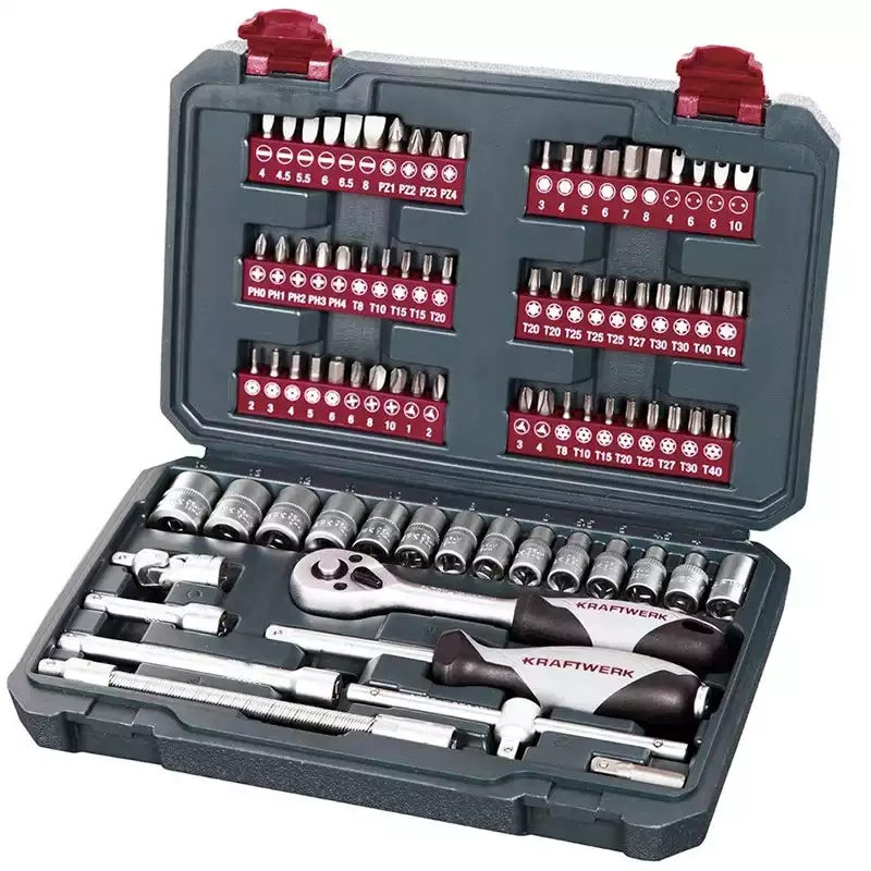 Caisse a outils comprenant 82 pièces, idéal pour bricoler dans son garage.