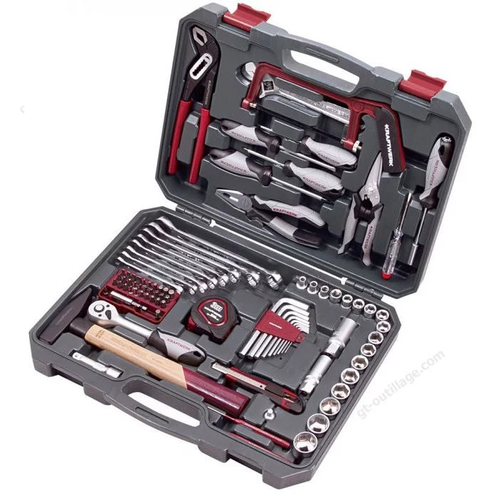 Malette d’outils Kraftwerk complete avec un assortiment de 90 pièces. Idéal pour tous vos travaux, que ce soit dans le garage, dans l’atelier ou à la maison.
