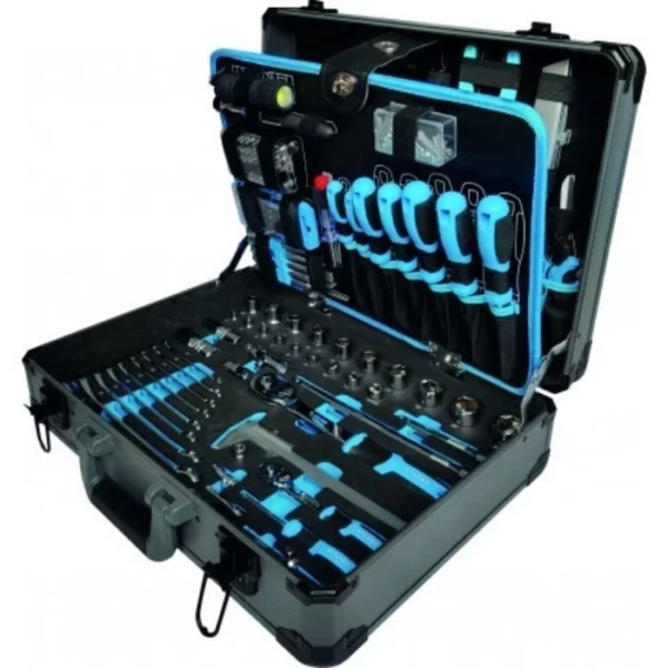 Mallette De Dépannage avec 133 outils, superbe mallette en aluminium avec cliquet 1/2″ et 1/4″ STILKER.
