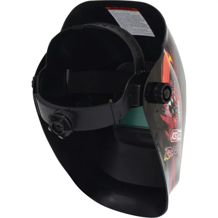 Le casque de protection conforme aux normes DIN EN 175 et EN 379 1/2/1 ajuste automatiquement la luminosité, avec une sensibilité réglable et une réponse rapide, alimenté par des cellules photovoltaïques. Il offre également une protection optimale du cou et un ajustement confortable.