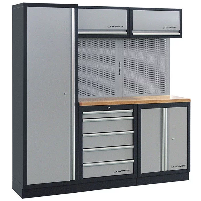 Par ailleurs, l’armoire est dotée d’étagères ajustables, vous permettant d’organiser vos fournitures selon vos préférences. Sa construction en acier assure une durabilité exceptionnelle, résistant à l’usure quotidienne. De plus, son design élégant s’intègre harmonieusement dans tous les ateliers, qu’ils soient professionnels ou domestiques. Meuble d’atelier 3 pièces KRAFTWERK