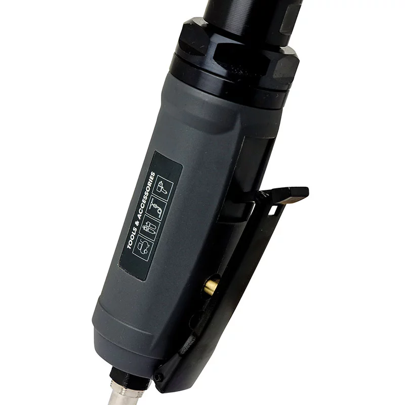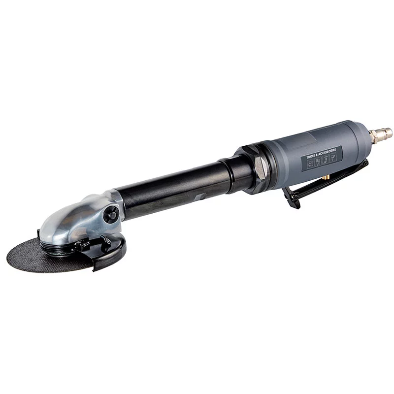 Outil à tronçonner haute performance pour une utilisation professionnelle dans les ateliers automobiles. Changement extrêmement rapide du disque de meulage grâce au blocage de l’arbre Le long manche et la tête d’angle à profil bas offrent une bonne accessibilité Carter de protection réglable sans outil, pour une protection contre les étincelles Pour meules à tronçonner.
