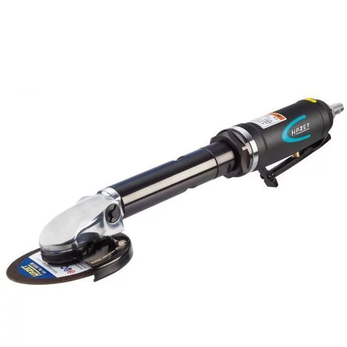 Meuleuse coudée pneumatique HAZET avec disque de diamètres 10 mm, Excellente prise en mains, légere de seulement 1,7 kg. Caractéristiques : Marque : HAZET Longueur : 371 mm Consommation d’air : 113 l/min Raccord : euro Raccord fileté : 1/4 inch Diamètre de disque : 10 mm Pression de travail : 6,3 bar Nombre de tours sans charge : 14000 tr/min Puissance : 700 W Poids : 1,7 kg