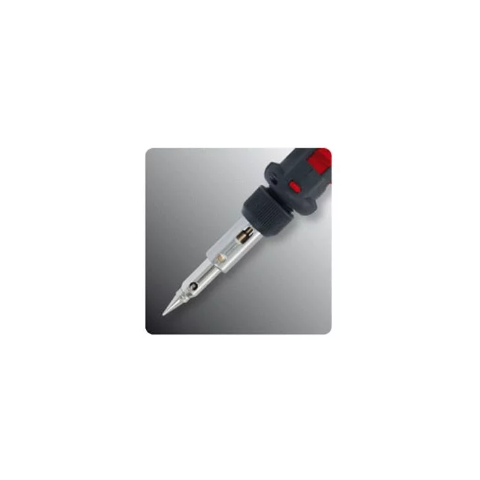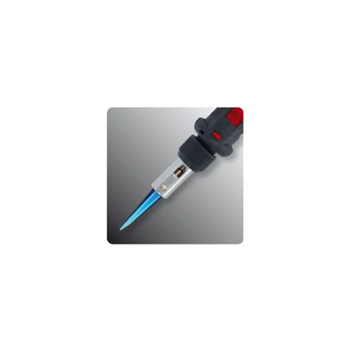 Fonctionne au gaz et atteint jusqu’à 1300°C / 2450°F, avec allumage piézo-électrique et réglage par molette. Livré avec bobine de fil à souder, éponge et pointes de soudure, dans un coffret de rangement. Gaz non inclus.