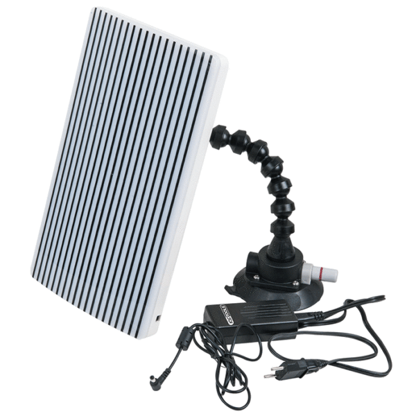 Miroir parfait pour visualiser des bosses en carrosserie. Idéal pour mieux déceler les creux et les bosse par exemples lors de dommages par la grêle, pour les déplacements La lumière est projetée en bandes Muni dune ventouse pouvant être fixée sur toutes les parties de la voiture.