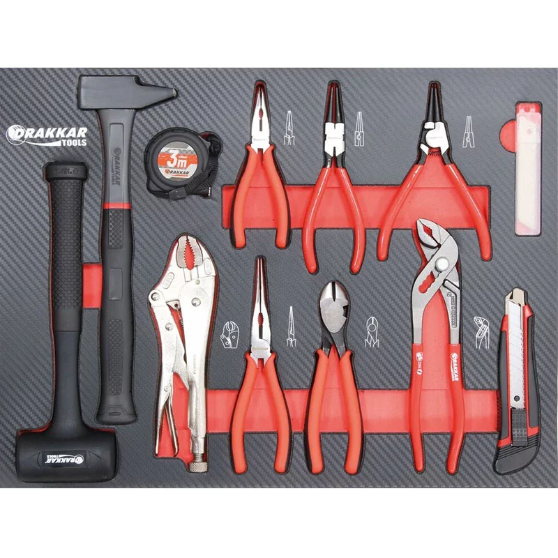Le revêtement en mousse carbone est à la fois élégant et robuste. Il protège vos outils des chocs, des rayures et de l’usure. Grâce à la mousse haute densité, vos pinces et vos marteaux restent bien calés.