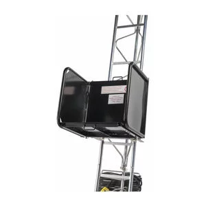 Monte-matériaux équipé d’une caisse à matériaux, il s’adapte particulièrement aux travaux de charpente, couverture et zinguerie.