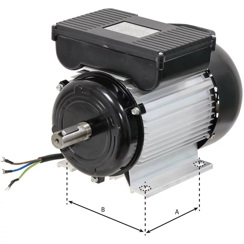 Moteur électrique monophasé 230V. Le diamètre de l’axe de sortie est de 24 mm, Moteur électrique monophasé idéal pour un petit compresseur de 3CV.