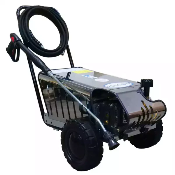 Nettoyeur haute pression SILVER eau froide. Convient à un usage professionnel prolongé et intensif (4h en continu). Équipé d’un capot de protection pour bloc pompe moteur résistant à la corrosion et durable dans le temps de part sa conception en acier inoxydable. Sa forme compact permet de pouvoir le déplacer très facilement.