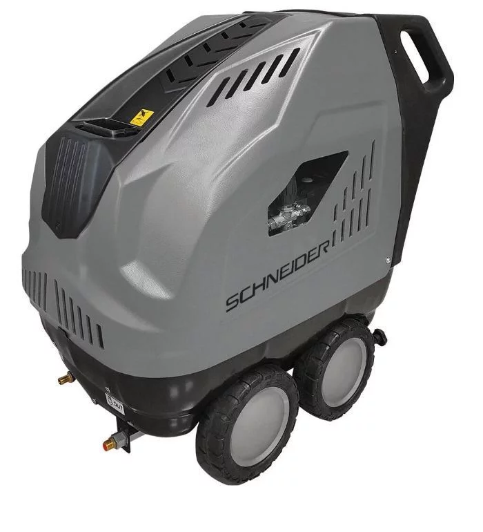 Nettoyeur haute pressions avec pompe radiale (pistons céramiques) à vilebrequin de qualité industrielle. Moteur 10CV. Chaudière : construction acier – Serpentin longueur 36m. Brûleur fioul. Régulateur séparé de la culasse. Sécurité de surpression. Système d’injection produit intégré. Châssis mixte acier/polypropylène. Capot ABS. Câble d’alimentation longueur 5m. Capacité réservoir fuel 24L. Système Total Stop. Alimentation : 380V Modèle : avec tuyau 10m Pistolet :! HP Type : eau chaude tri Type de pompe radiale : Usage intensif 8 à 10 h/jour Longueur du flexible : 10m Capacité réservoir : 24 litres Niveau sonore : 90dB Débit max : 1560 l/h Type moteur : tri 10HP Pression de service : 150 bar Température : 0/150° Rotation : 1450 tr/min Puissance : 7,5kW Dimensions : 880x590x800mm Poids : 160kg Livré avec : – Pistolet HP – Lance simple 700mm à tête réglable et buse – Flexible tressé 3/8 deux tresses métalliques – Roues pleines caoutchouc