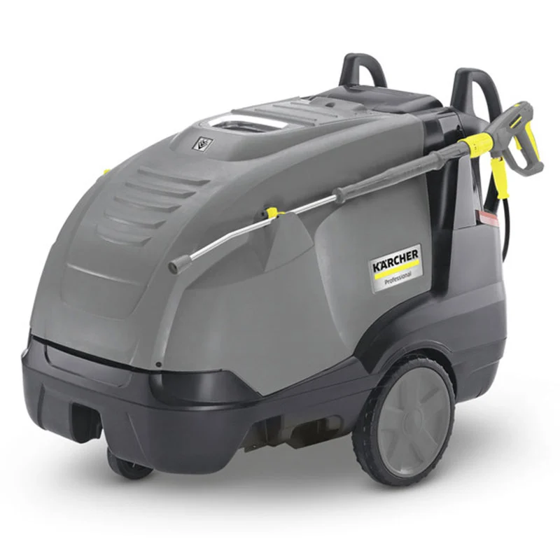 Nettoyeur haute pression à eau chaude KÄRCHER®. Nettoyeur extrêmement résistant et équipé d’un moteur triphasé refroidi par eau. Le chargement et le transport de cet appareil dans les véhicules est facilité par ses anneaux d’arrimage. Cependant la grande originalité de ce nettoyeur haute pression réside dans son système de protection de la machinerie et du serpentin contre le calcaire et la corrosion. Sa durée de vie s’en trouve ainsi prolongée.