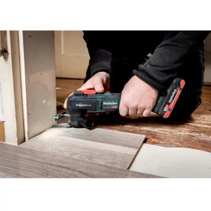 Outil multifonction sans fil METABO. Indispensable dans le domaine de l’aménagement intérieur pour le sciage, le ponçage, le grattage et le rabotage des matériaux les plus divers. Ce produit est équipé d’un système metabo Quick, d’un moteur Brushless et d’une LED pour une bonne visibilité de la zone de travail. Livrée sans chargeur, sans batterie. Ce produit peut être utilisé avec des batteries 18 V et chargeurs des marques qui utilisent le système CAS.