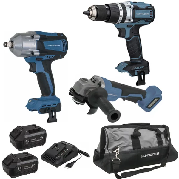 Pack 20V perceuse visseuse clé à choc meuleuse SCHNEIDER