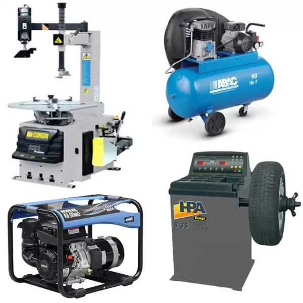 Pack dépannage pour camion atelier, il est composé d’un démonte pneu, une équilibreuse de roues, un groupe électrogène, et un compresseur.