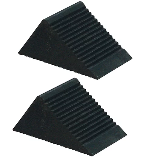 Paire de cales caoutchouc pour roues de véhicules utilitaires légers et véhicules légers. L’ensemble est composé de deux cales de roue en caoutchouc permettant de stabiliser les remorques, les véhicules, les caravanes, les fourgons, les remorques, les tracteurs sur une légère pente ou sur un terrain instable.