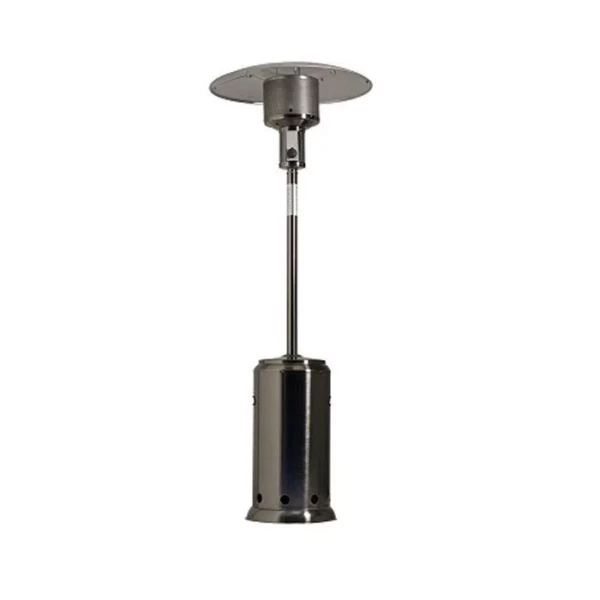Parasol chauffant en inox gaz propanne 3/8 kW avec allumage piezo, pour une utilisation en extérieur.