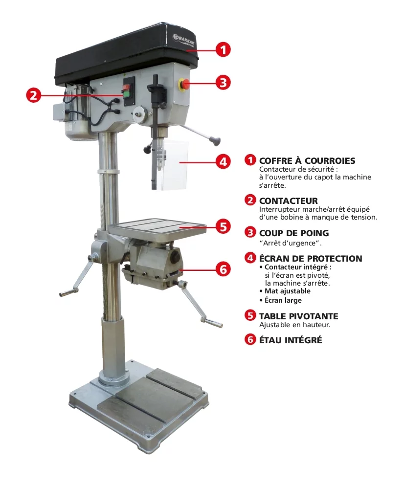 Perceuse à colonne 750W TRIPHASÉ DRAKKAR