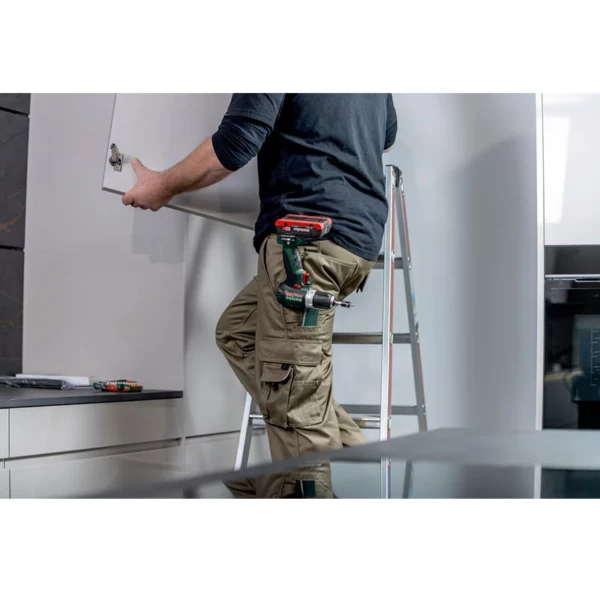 La perceuse-visseuse METABO est équipée d’un mandrin sans clé, ce qui permet un changement rapide des embouts. Son éclairage LED intégré éclaire la zone de travail, même dans des environnements sombres. La batterie lithium-ion garantit une charge rapide et une longue durée de vie.