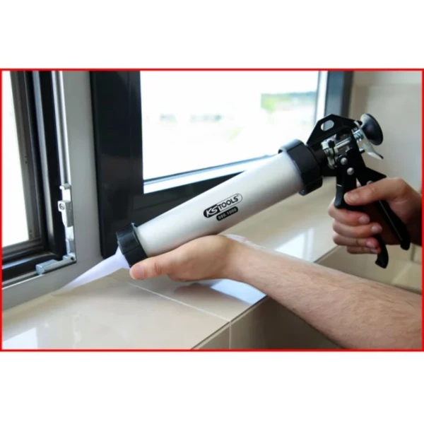 Pistolet à cartouche et poches silicone 400 ml KSTOOLS®.* Pistolet à silicone – 400 ml Corps en aluminium anodisé argent, poignée époxy et tige de piston cémentée