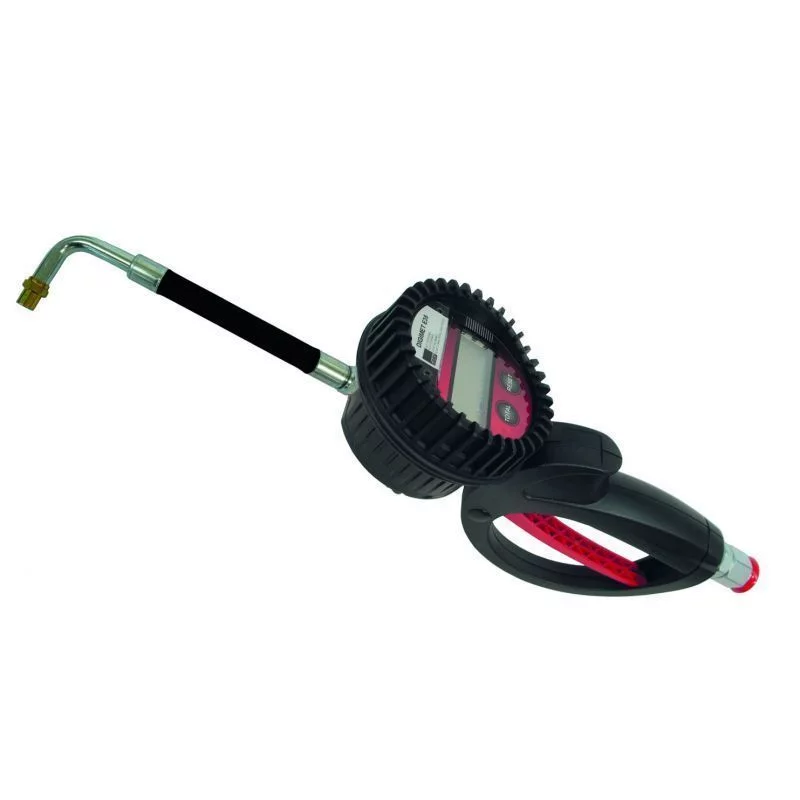 PISTOLET À HUILE AVEC COMPTEUR DIGITAL ET BEC FLEXIBLE ANTI-GOUTTES RACCORD 1/2″. Affichage LCD. 2 mesures : totale et partielle. Raccord tournant, calibrable. 100 bar maxi. Flexible anti-gouttes. Mesure jusqu’à 35L/mn. Fontion avec 2 piles CR1234A.