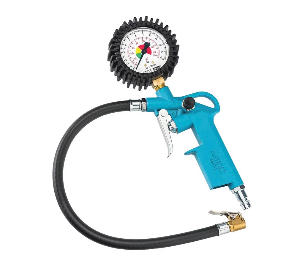 Son design compact et léger rend l’outil facile à transporter et à utiliser. De plus, la longueur du tuyau de 400 mm permet une grande flexibilité et une facilité d’accès, même dans les zones difficiles. Le pistolet de gonflage HAZET est également équipé d’un manomètre précis. Vous permettant de vérifier la pression des pneus en temps réel.