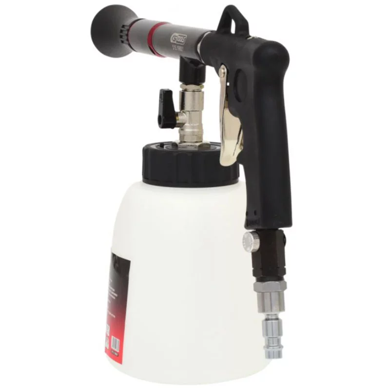 Capable de fonctionner à une pression allant généralement jusqu’à 10 bars. Il s’adapte à la plupart des systèmes de compresseurs standards. Certains modèles incluent un réservoir permettant de pulvériser simultanément des liquides de nettoyage ou des détergents en complément de l’air comprimé. Pistolet de nettoyage pneumatique KS TOOLS