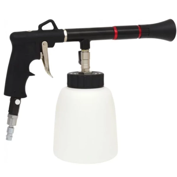 Pistolet de nettoyage pneumatique pour nettoyer toutes sortes de surfaces sèches ou humides. Pour le nettoyage professionnel des tissus, garnitures, canaux d’aération, tapis… Séchage rapide du support Buse rotative avec système de roulements à billes, Livré avec un raccord pneumatique 1/4″.