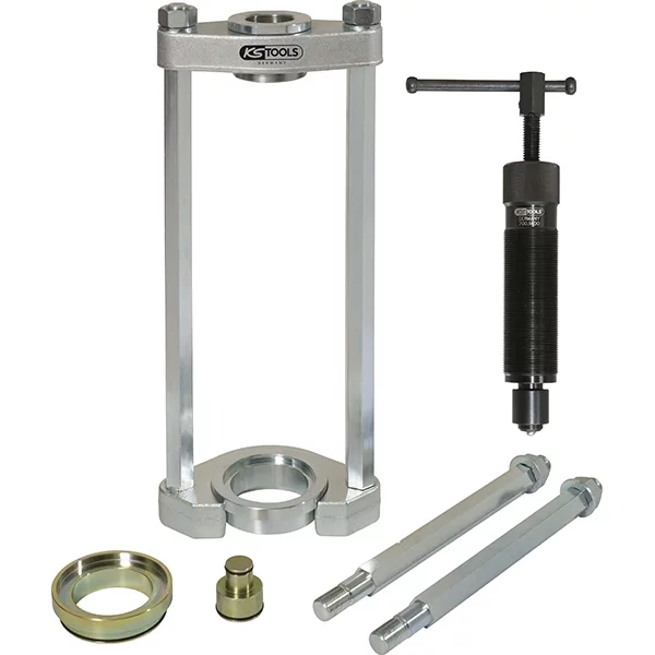 Pour une utilisation en combinaison avec 700.1700 pour le montage et le démontage de silentblocs, roulements, douilles. Permet le démontage et le montage directement au véhicule. Même pour des roulements extrêmement hauts. Vis de force extrêmement robuFichiers_integration. Marque : KSTOOLS Piston hydraulique et presse de support Vérin hydraulique 10 T, 1.1/2″x16G Presse universelle sans tige de force, 5 pièces Poids : 9.80 Kg