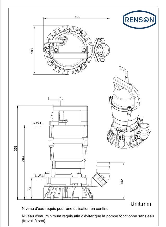 Pompe de chantier eau chargée 0.4 kW RENSON