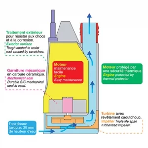 Cette pompe fonctionne sous l’eau. Elle est donc totalement submersible. Grâce à sa conception robuste, elle résiste bien à l’humidité et à la corrosion. Son moteur électrique est silencieux et efficace. Il démarre rapidement et fonctionne sans interruption.