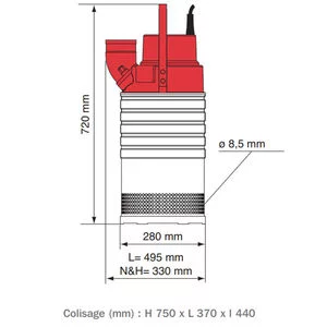 Trous de la crépine : Ø 8,5 mm