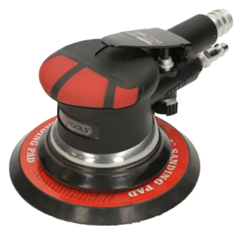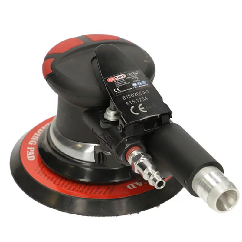 Cette ponceuse orbitale détient un design ergonomique pour un travail optimal. L’hauteur du boîtier en composite revue à la baisse pour un travail de précision. Il est intégré un tuyau de sortie d’air, contient un plateau avec 6 trous d’aspiration: 80 mm/11 mm, un réglage de vitesse continu, d’un poignée isolée contre le froid et d’un boîtier ultra léger en PVC résistant. Il y’a peu de vibrations. Combine avec un sac de récupération de poussière ou avec un aspirateur industriel, également livré avec un sac de récupération en tissu pour la poussière et livrée avec un raccord pneumatique 1/4″.