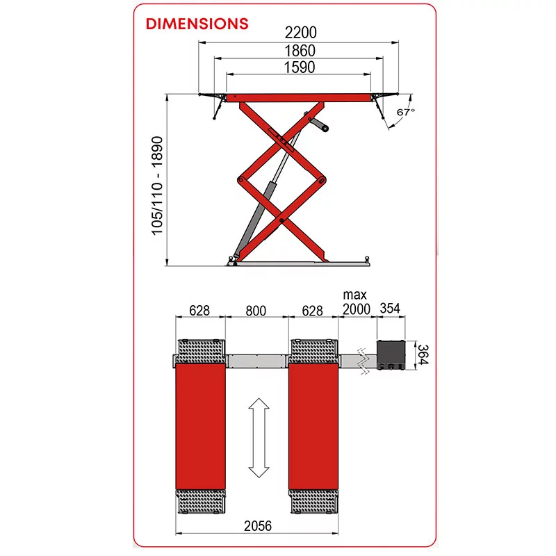 Hauteur de levage maxi : 1890 mm