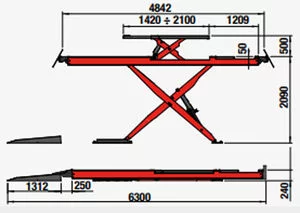 Pont ciseaux électrohydraulique CORGHI de 4,3 tonnes. Ce pont est équipé d’un chemin géométrie (encastrement avant et plaques de décompression pneumatiques arrières) et d’un auxiliaire de levage de 3,5 tonnes. L’écran de contrôle ALPHANUMERIQUE multifonctions, permet d’afficher la hauteur de l’élévateur et de paramétrer son arrêt à la hauteur souhaitée.