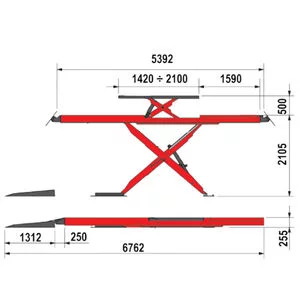 Pont ciseaux électrohydraulique CORGHI sur chemin plat principal de longueur 5200 mm exploitable. Auxiliaire de levage intégré.