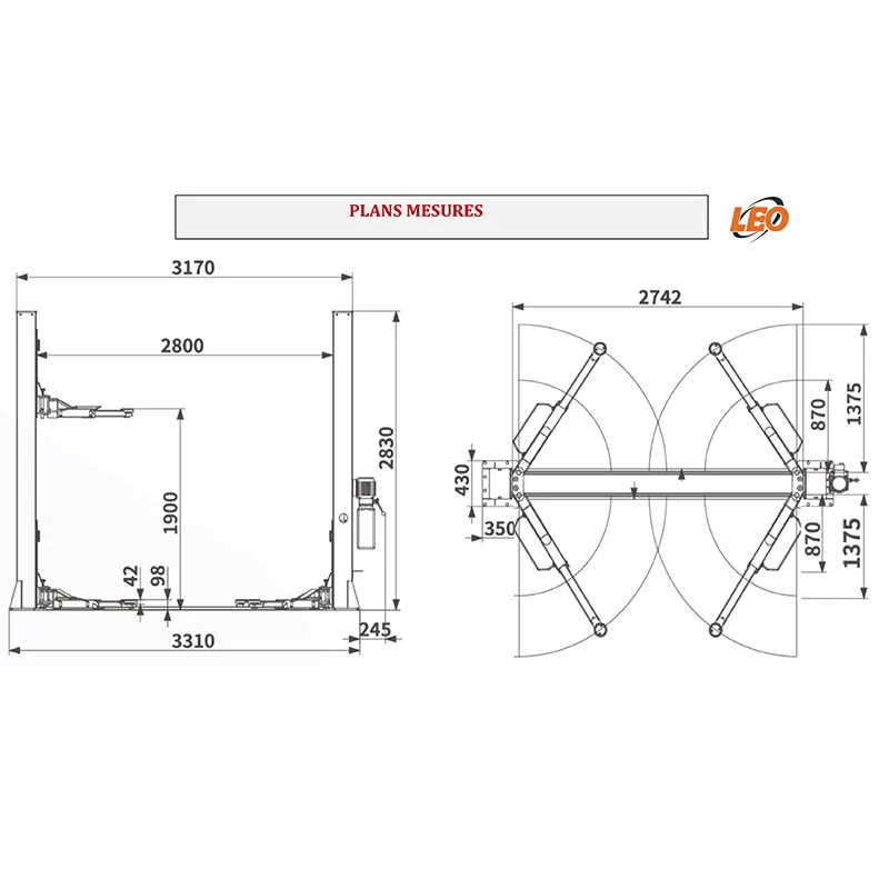 Découvrez le pont élévateur 2 colonnes 4 tonnes de LEO by Nexion France. Idéal pour les garages, il allie robustesse et sécurité. Avec sa capacité de levage de 4 tonnes, il assure une manipulation facile et stable des véhicules.