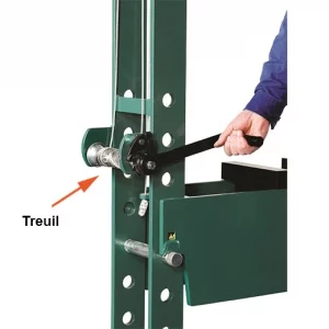 Presse d’atelier éléctro-hydraulique motorisée avec pompe montée sur support pivotant (90°). Presse équipée d’un vérin mobile. Construction robuste entièrement soudée. Treuil pour l’ajustement facile et rapide de la table. Presse fabriquée en Europe.