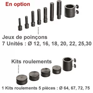 Option disponible lors de la commande (voir plus haut) : Jeux de poiçons 7 Unités : Ø 12, 16, 18, 20, 22, 25,30 mm