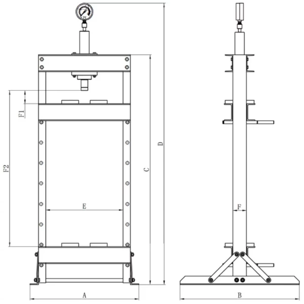 La Presse d’atelier manuelle 12T est conçue pour fournir une force de travail impressionnante de 12 tonnes, idéale pour les tâches les plus exigeantes. Sa course du vérin de 175 mm assure une grande efficacité dans les travaux de presse. L’outil est robuste et stable, offrant une capacité maximale de 12T pour des résultats professionnels.
