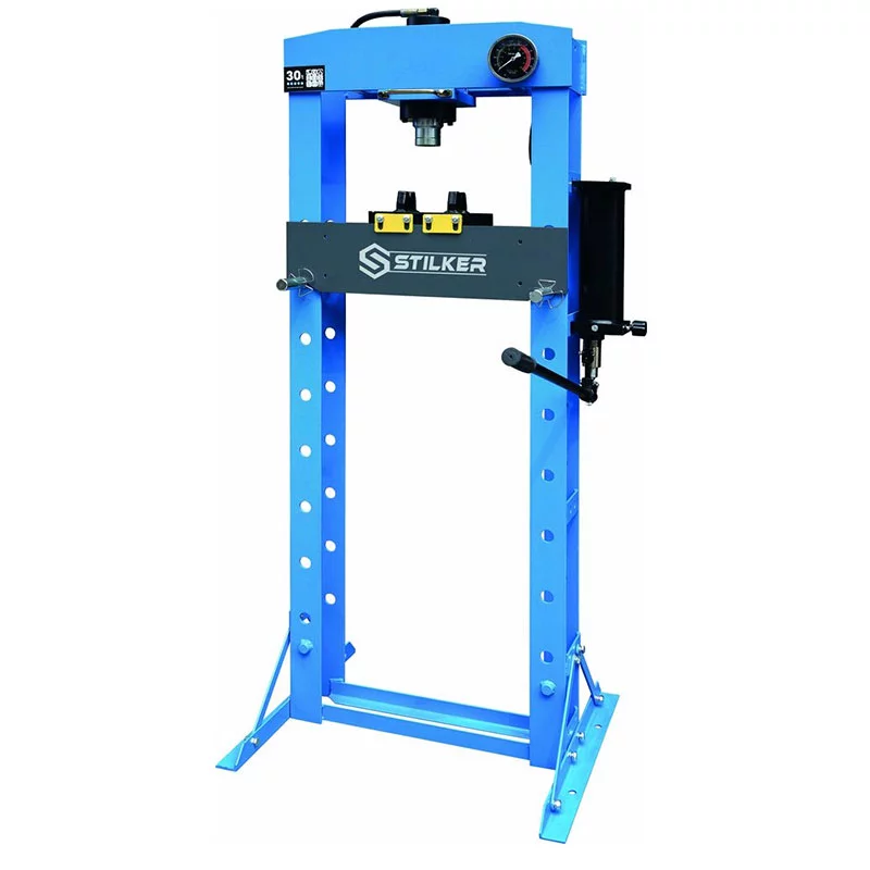 Presse d’atelier 30 tonnes STILKER, presse sur bâti soudé à pompe manuelle, presse hydraulique équipée d’un, manomètre, presse avec table ajustable.