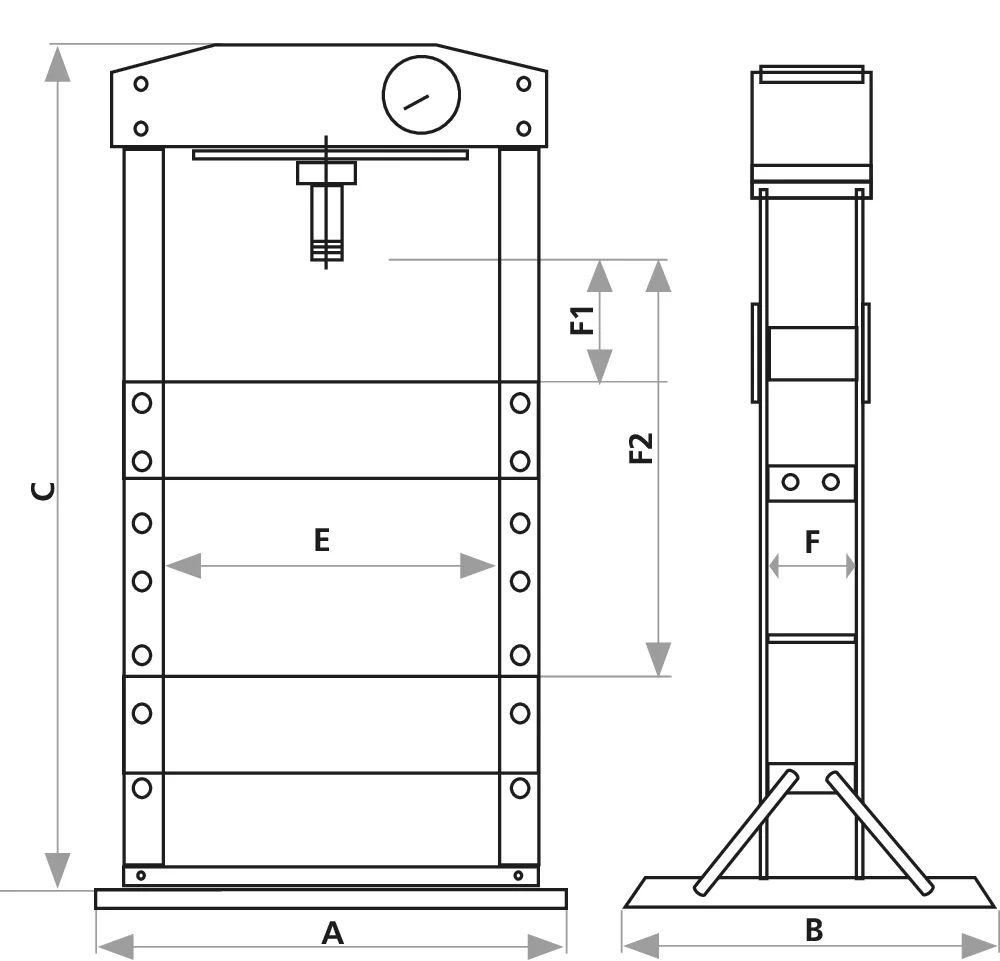Équipée d’un bati boulonné solide, elle garantit une stabilité maximale pendant l’utilisation. Le manomètre intégré permet un suivi précis de la pression, assurant ainsi un contrôle optimal de vos opérations. La presse pneumatique dispose d’un piston avec retour automatique, facilitant les cycles de travail et augmentant l’efficacité.