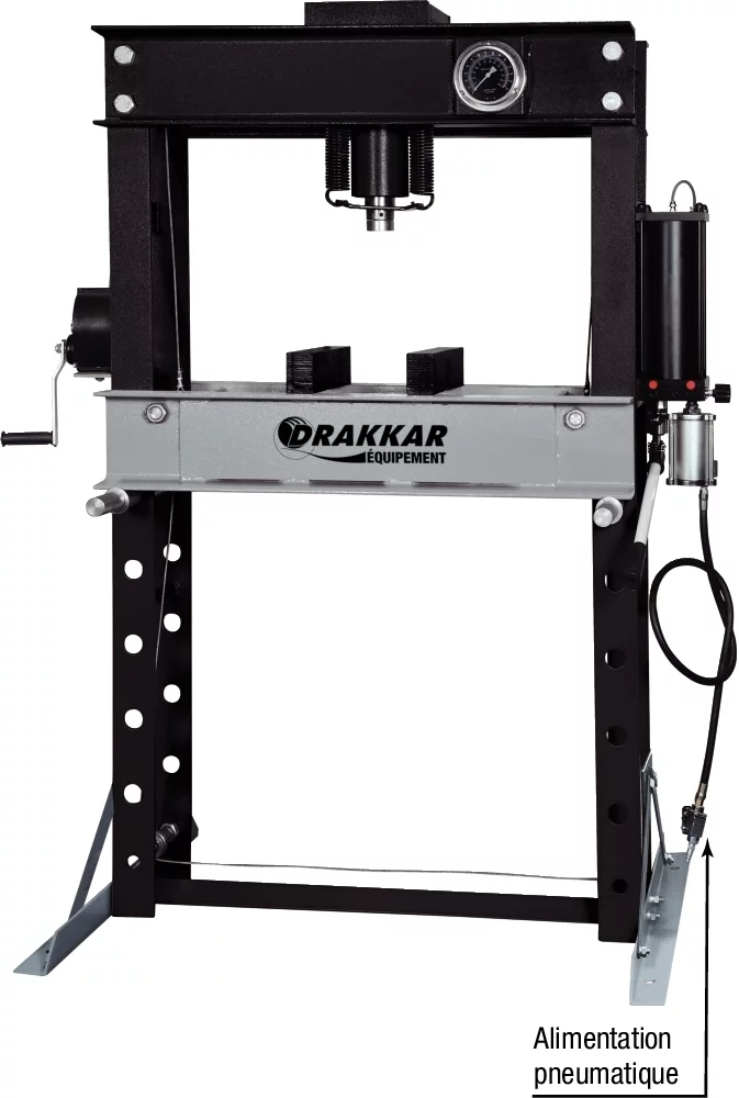 Découvrez la presse d’atelier pneumatique 45 Drakkar, robuste et performant conçu pour répondre à vos besoins les plus exigeants. Avec une capacité impressionnante de 45 tonnes, cette presse est idéale pour les applications industrielles et les ateliers professionnels.