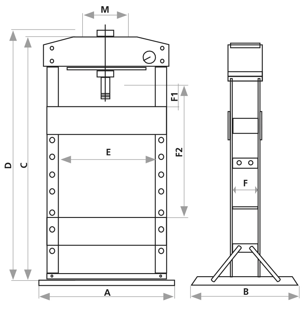 La Presse d’atelier pneumatique est équipée de 2 V de dressage pour un travail précis et fiable. La pédale de commande pour la pompe pneumatique facilite l’utilisation et améliore l’efficacité. Avec une course du vérin de 250 mm, elle s’adapte parfaitement à diverses applications. Cette presse dispose également d’une capacité maximale de 75T et d’un vérin mobile coulissant latéralement pour des performances exceptionnelles.
