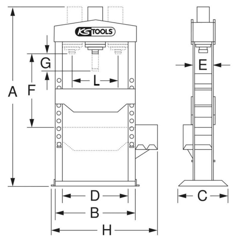 Presse hydraulique d’établi, pompe hydraulique à deux vitesse. Retour automatique du piston, sécurité hydraulique en cas de surcharge.