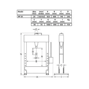 Presse d’atelier professionnelle de 20 tonnes, conçue pour une utilisation intensive, Très bonne qualité, construction robuste entièrement soudée. Presse hydraulique équipée d’un vérin mobile et d’un piston chromé dur, course très longue de 240 mm. Commande à pédale pour utilisation “mains libres” en charge, pompe à double vitesses pour une approche rapide du piston à la zone de travail. Dispositif pneumatique de retour, alimentation pneumatique requise.