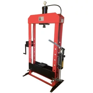 Presse hydraulique de 30 tonnes . Livrée avec un jeu de « V ». Équipée d’un piston mobile, d’une pédale d’approche rapide, d’un treuil et d’un manomètre. Capacité: 30 tonnes Pompe manuelle Piston mobile et treuil Sécurité hydraulique en cas de surcharge Retour automatique du piston Tige chromée Manomètre Livrée avec jeu de “V” Poids: 222 kg